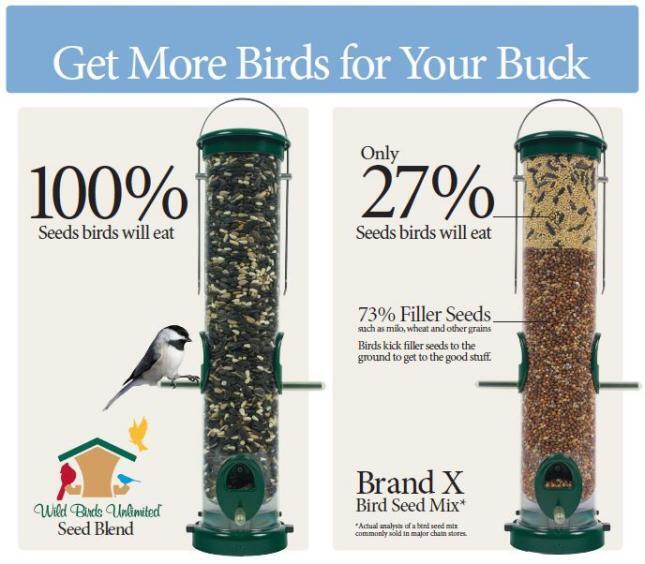 - WBU seed blends are 100% seed the birds prefer and are healthy for them